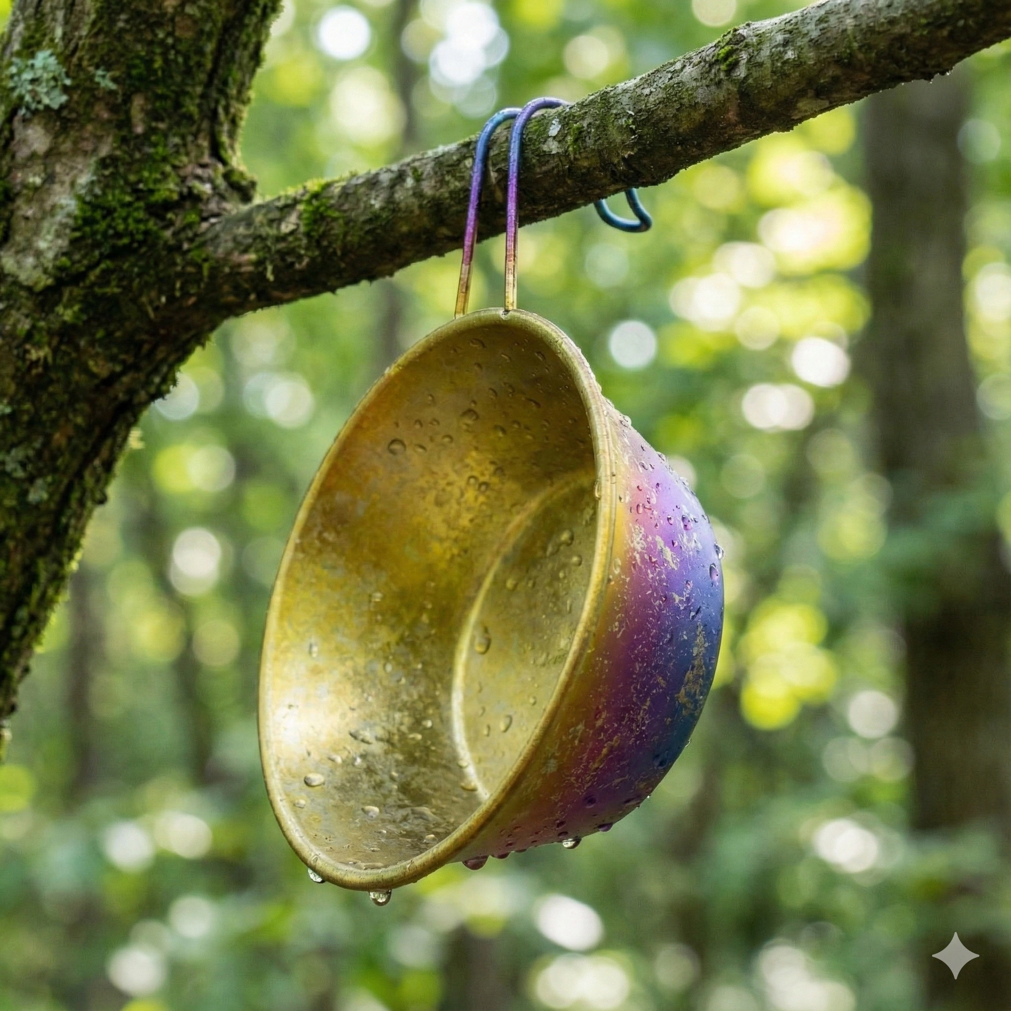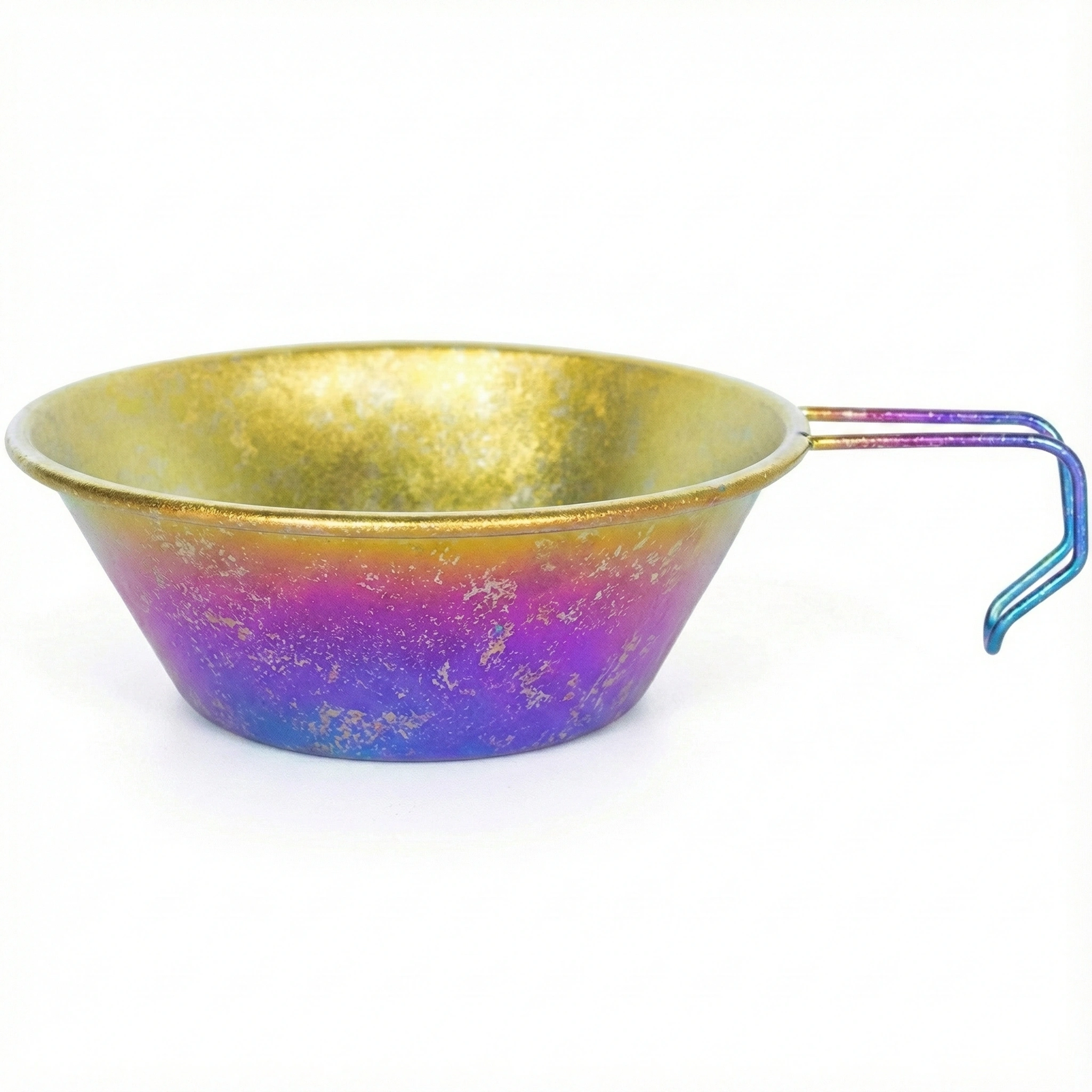 Model Ti1090T • SKU 7T-90B5D785F7 • TA1 Titanium (≥99.8%) • Crystal color finish option • Direct-flame capable • Ultralight, stackable, and program-ready for outdoor retail.