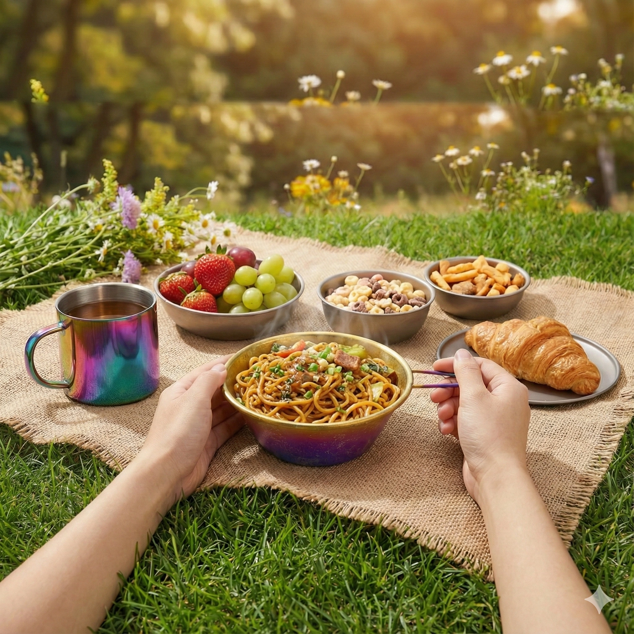| Handle | Rigid wrap-around, non-folding | Safety / Usability | Secure grip; won’t loosen; easier pour and eat |