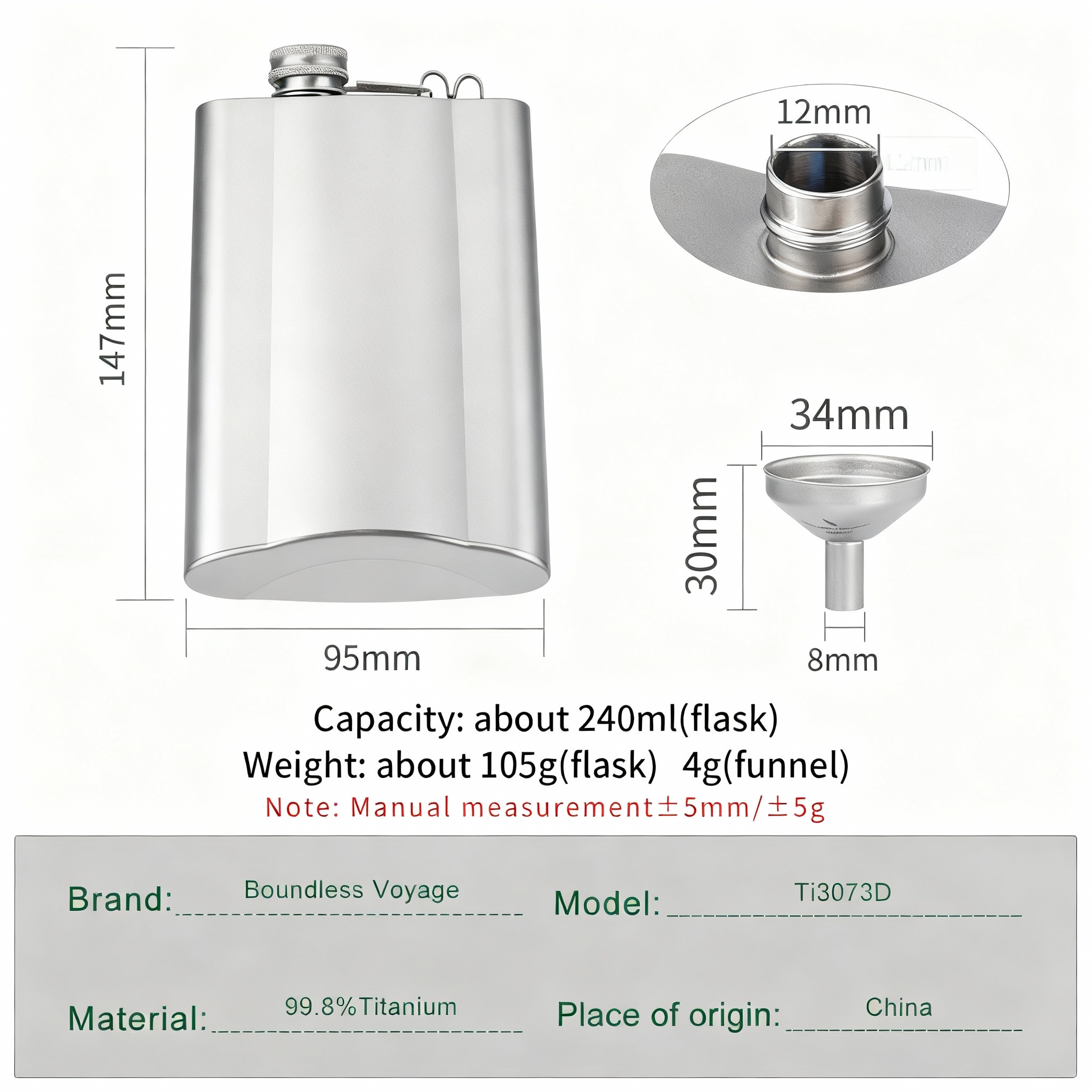 | Included | Titanium funnel ×1 • Storage pouch ×1 • Care card ×1 |