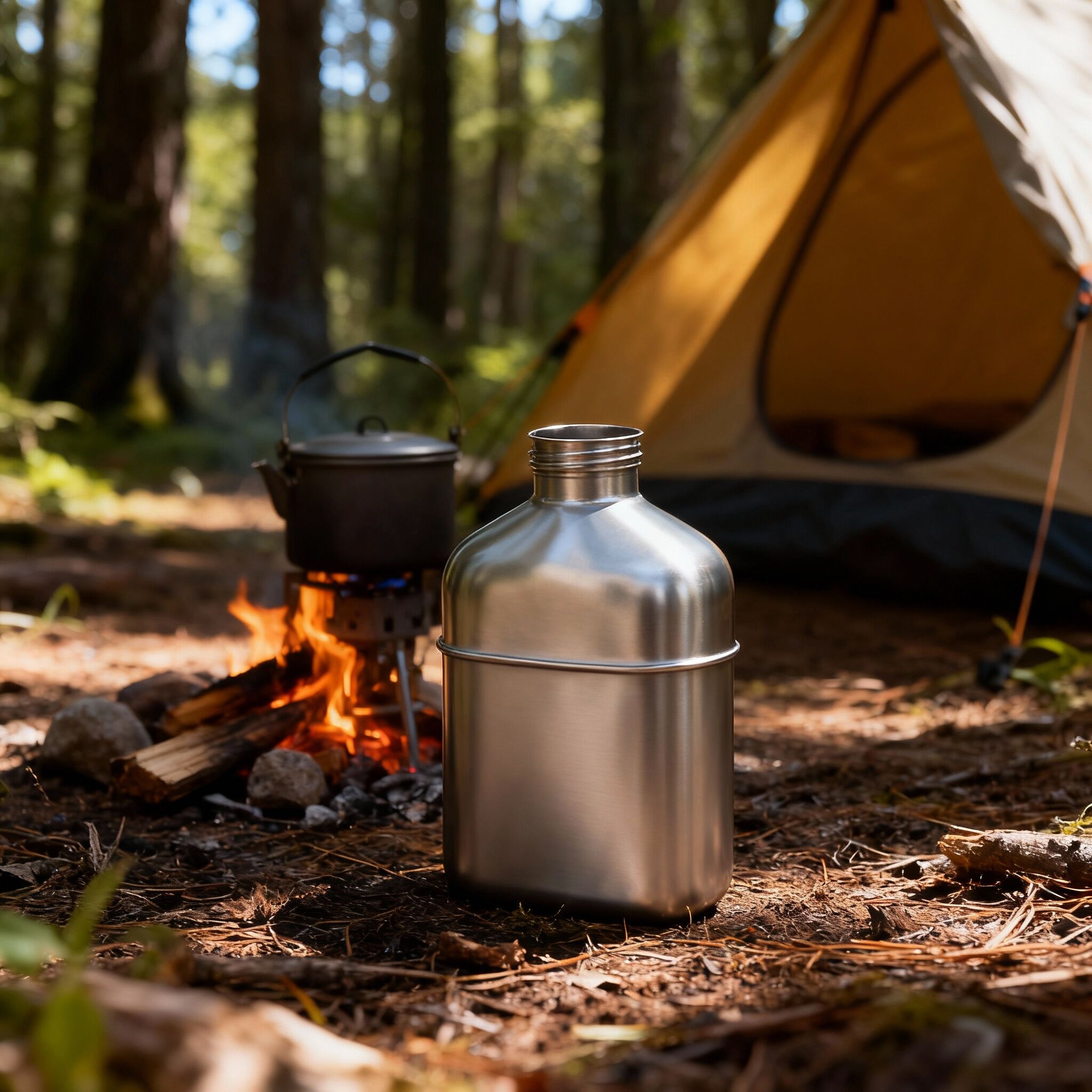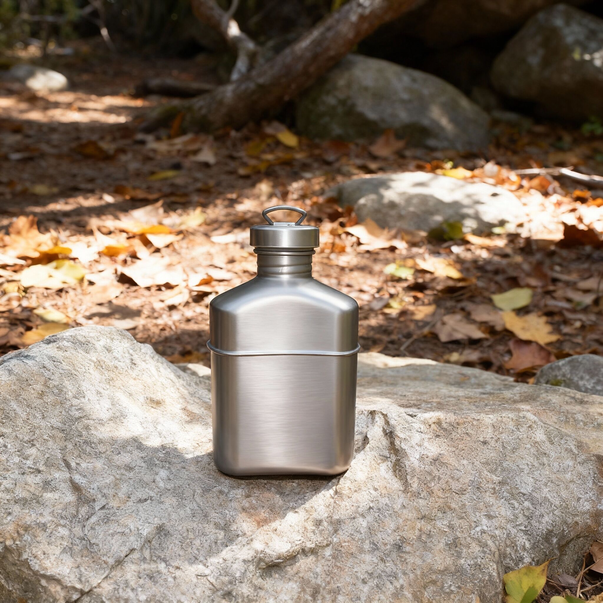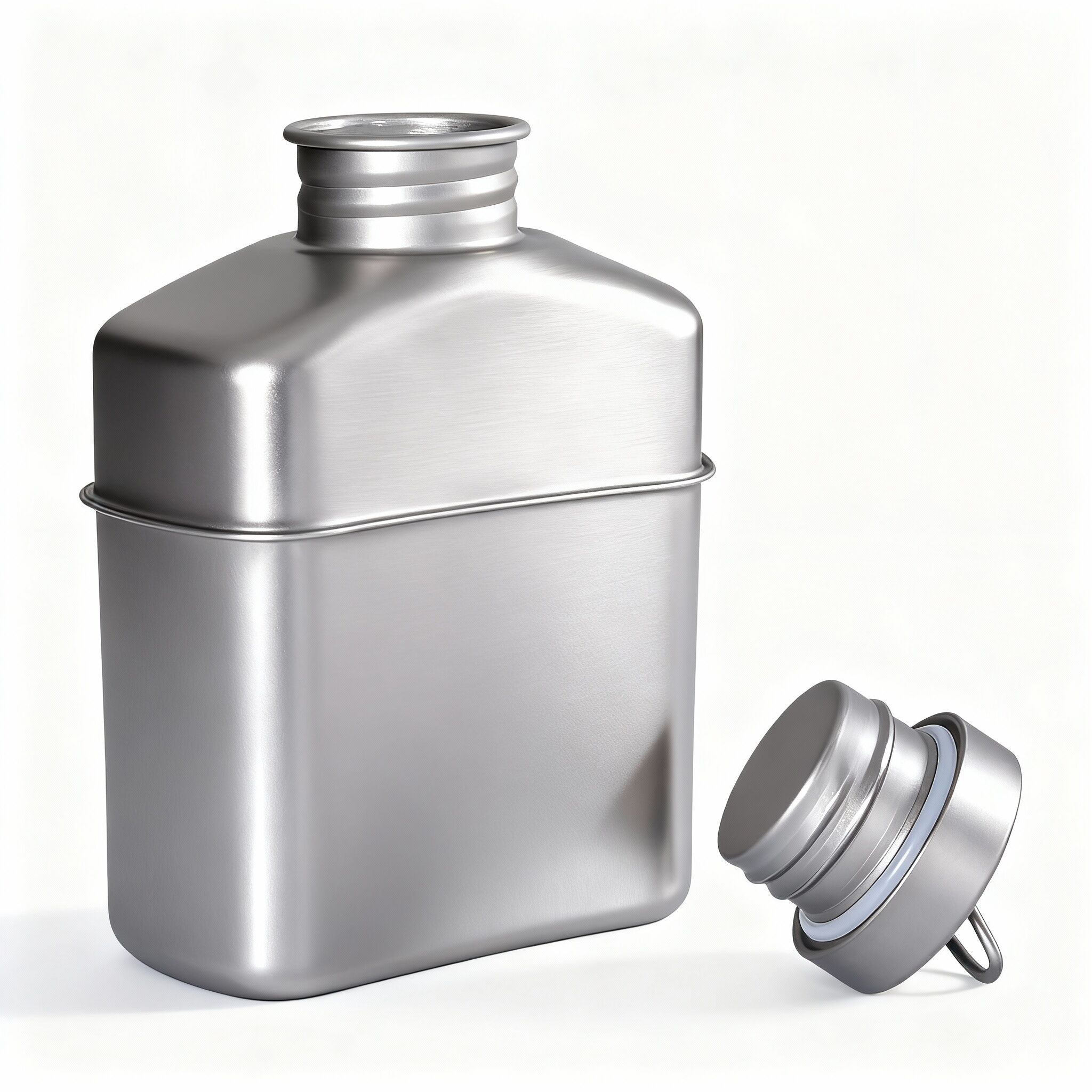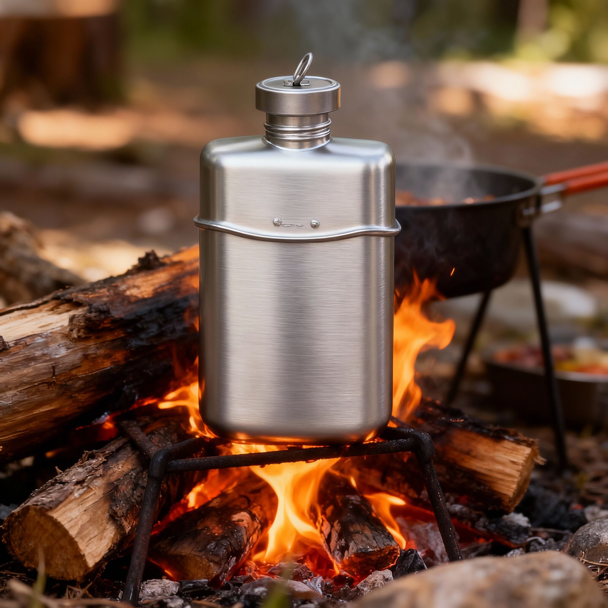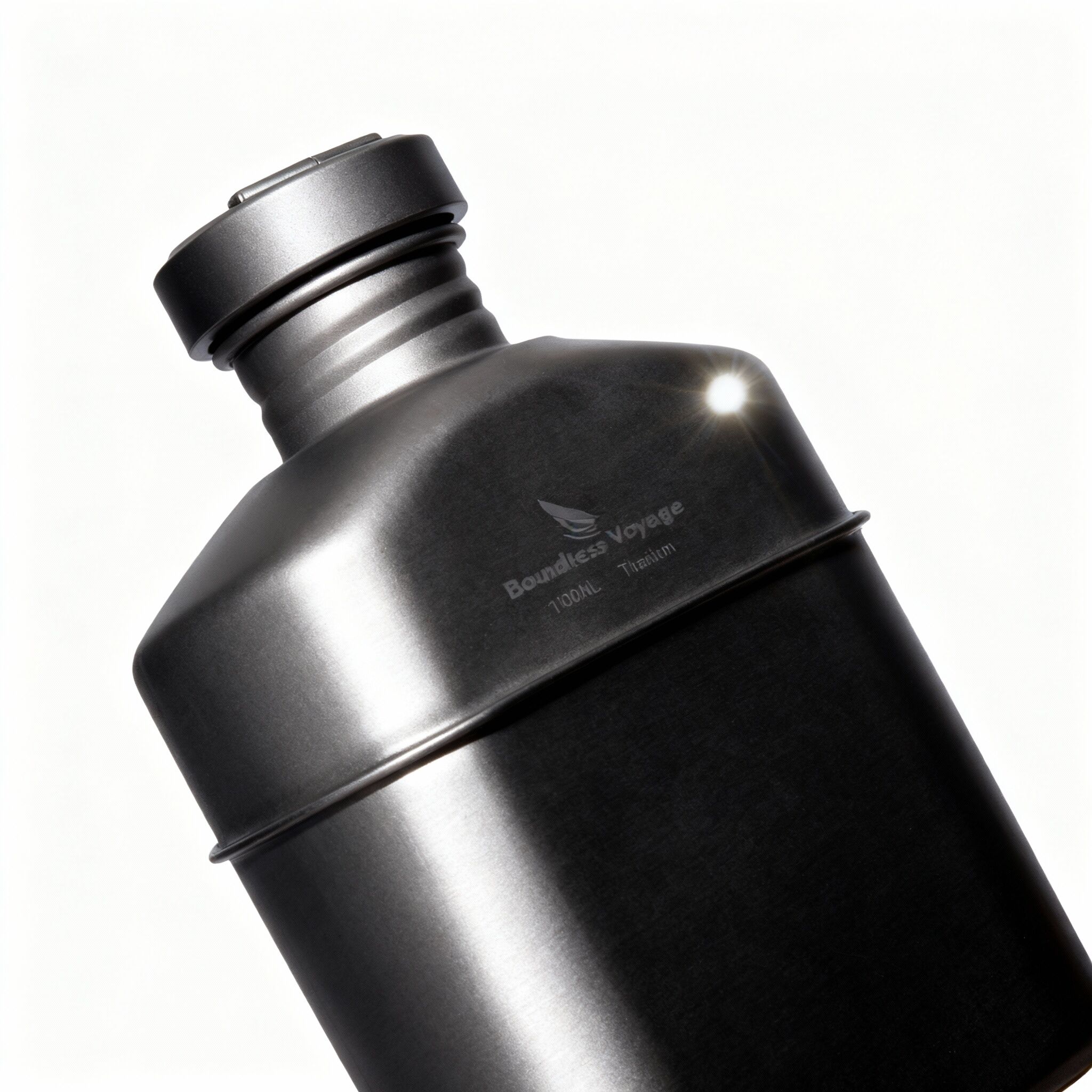 Produkt: Titan-Militärflasche 1100 ml mit Deckel, Kette zum Aufhängen und Tarntasche – entwickelt für ultraleichtes Tragen, Zuverlässigkeit im Feldeinsatz und Präsentation für den Einzelhandel.