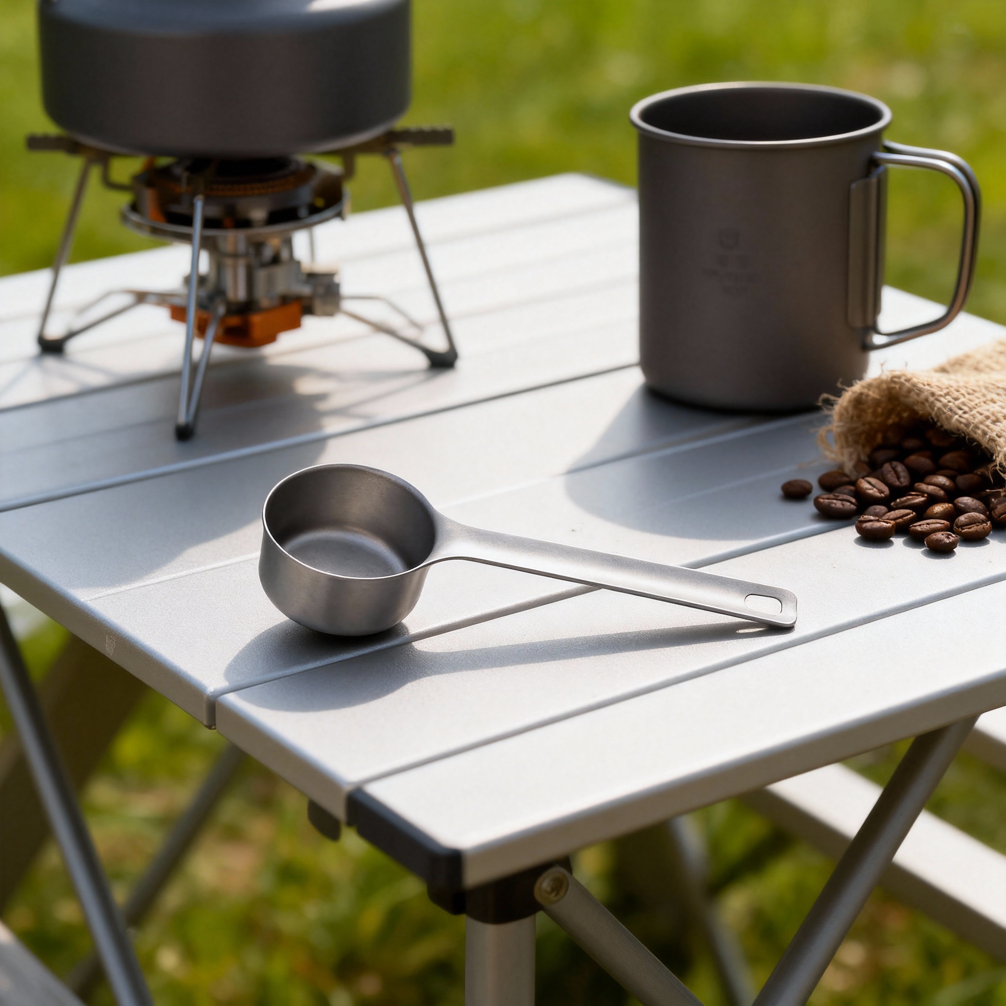 This scoop is engineered from **99.8% pure titanium**, offering a stable, non-corrosive, lightweight solution ideal for global retail programs, outdoor brands, and specialty coffee suppliers.