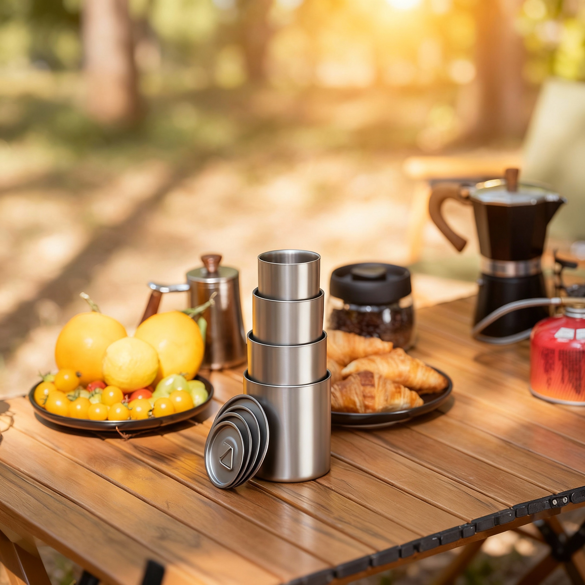 Zabezpiecz już teraz pojemność sezonową — tytanowe kubki, które można ustawiać jeden na drugim, cieszą się dużym zainteresowaniem jako dodatki w handlu detalicznym na świeżym powietrzu i w sklepach specjalistycznych.